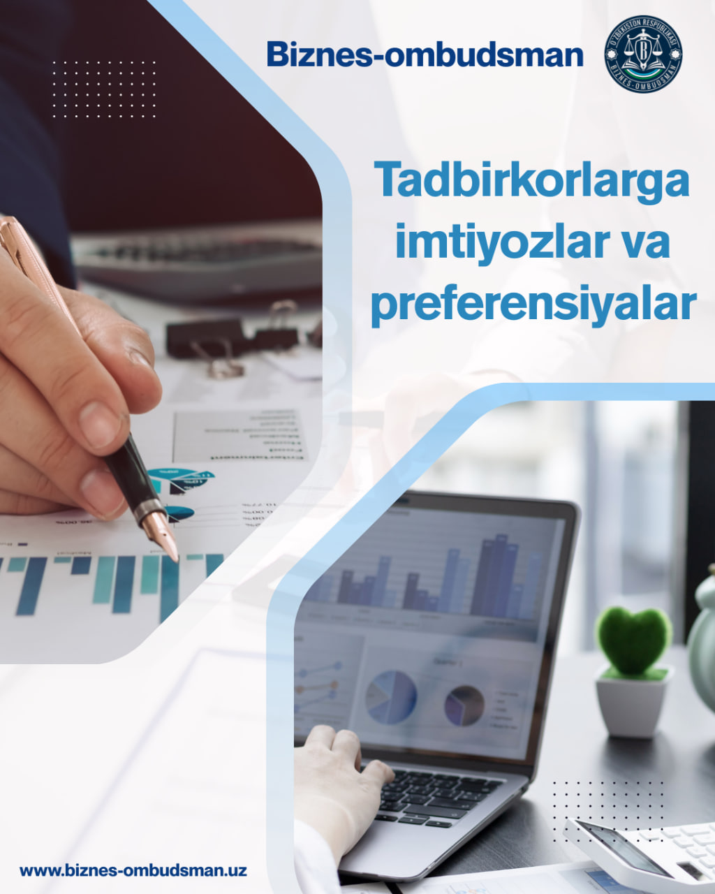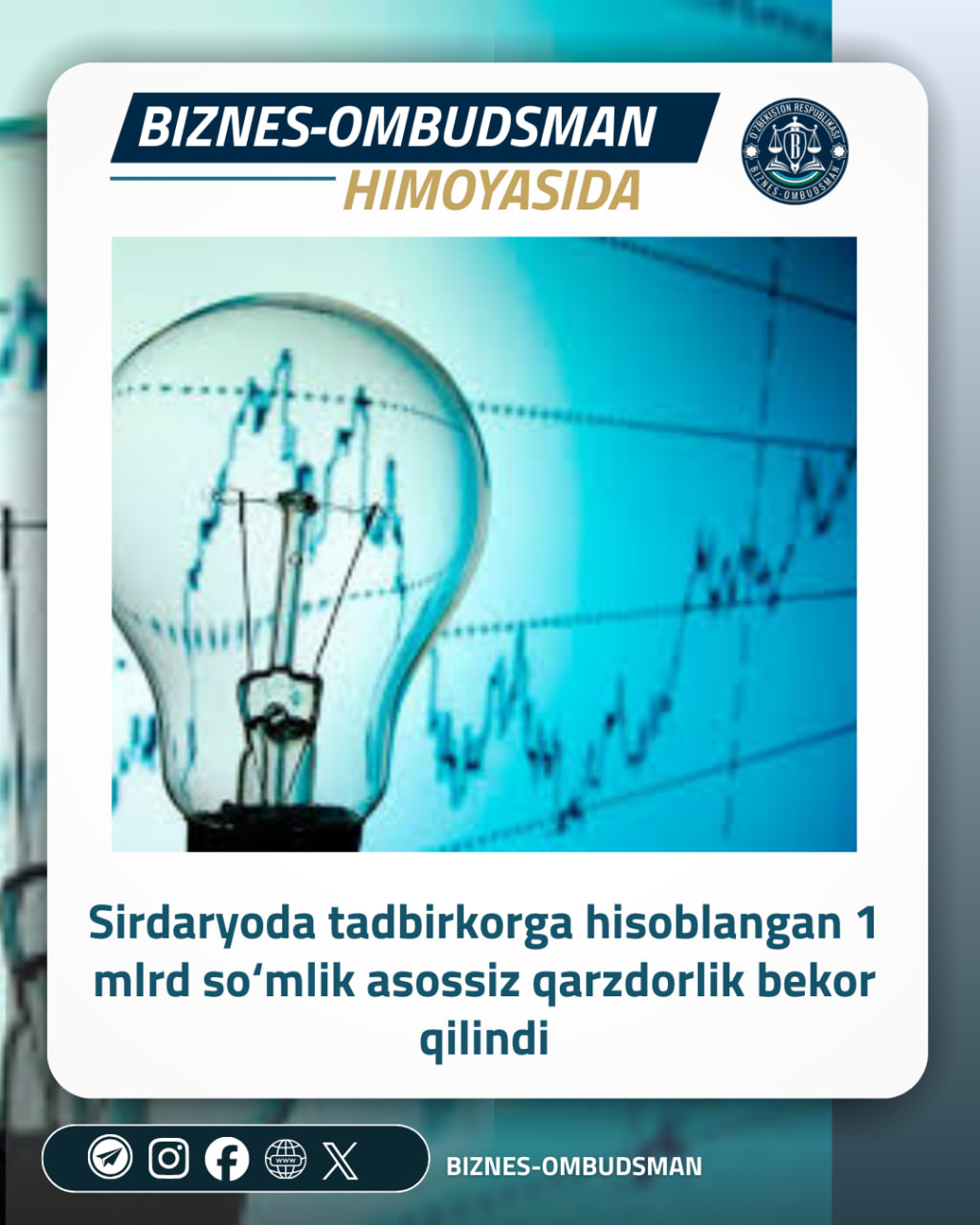 12 – 17-yanvar kunlari Biznes-ombudsman faoliyatida va tadbirkorlar hayotida roʻy bergan asosiy voqealar dayjesti Biznes-ombudsman Abdumannop Buriyev Sirdaryoda tadbirkorlar bilan uchrashdi Biznes-ombudsman qo‘shma korxona manfaatlarini sudda himoya qildi Biznes-ombudsman sirdaryolik tadbirkorlarning muammolarini joyida o‘rgandi Biznes-ombudsman aralashuvi bilan tadbirkorga qo‘llanilgan asossiz jarima bekor qilindi Biznes-ombudsman jamoasi aholi va qishloq xo‘jaligini ro‘yxatga olish tadbirida faol qatnashmoqda Qurilish bo‘yicha obyektni topshirgan tadbirkorning mablag‘i undirib berildi Biznes-ombudsman hamda Konrad Adenauer jamg‘armasi vakillari o‘rtasida uchrashuv bo‘lib o‘tdi Ortiqcha undirilgan mablag‘ tadbirkorga qaytarib berildi Biznes-ombudsmanning tadbirkorlar bilan navbatdagi shaxsiy qabuli bo‘lib o‘tdi Tadbirkorga noqonuniy qo‘llanilgan jarima bekor qilindi