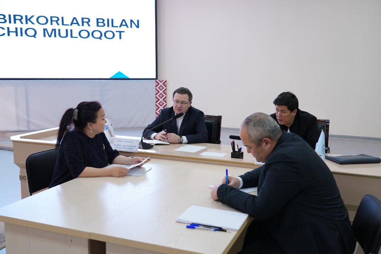 Ochiq muloqot davomida tadbirkorlik faoliyatida duch kelinayotgan to‘siqlarni bartaraf etish va qonuniy manfaatlarni himoya qilish masalalariga alohida e’tibor qaratildi.
