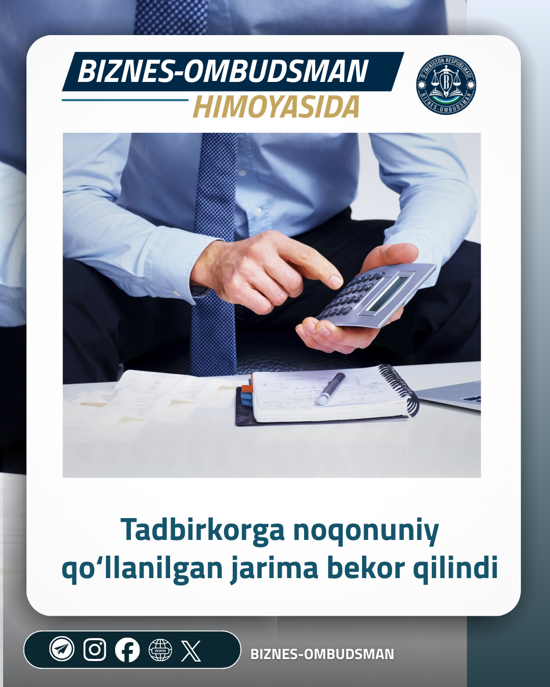 Biznes-ombudsman aralashuvi bilan tadbirkorga qo‘llanilgan asossiz jarima bekor qilindi