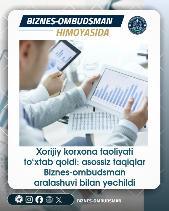 Xorijiy korxona faoliyati to‘xtab qoldi: asossiz taqiqlar Biznes-ombudsman aralashuvi bilan yechildi