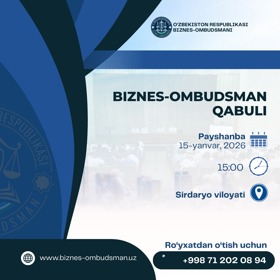 Бизнес-омбудсман тадбиркорларнинг ҳуқуқларини ҳимоя қилмоқда