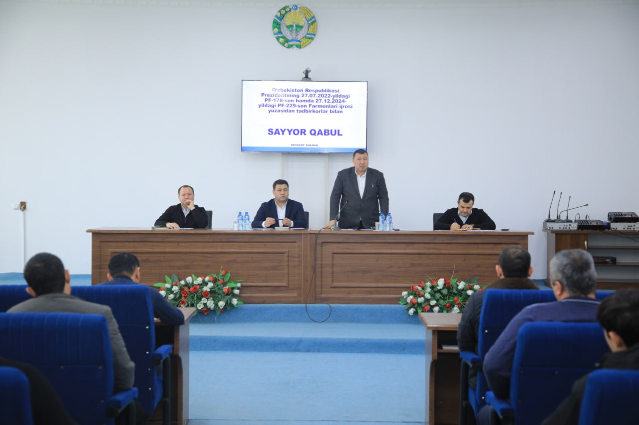 Sayyor qabullar davomida tadbirkorlar tomonidan yer ajratish, kreditlash, infratuzilma, soliq va bojxona tartib-taomillariga oid 100 ga yaqin murojaatlar kelib tushdi. Shuningdek, Xorazm viloyatida maktabgacha ta’lim sohasida faoliyat yuritayotgan 1700 dan ortiq tadbirkorlar bilan ZOOM platformasi orqali masofaviy uchrashuv o‘tkazilib, sohadagi imtiyoz va talablar yuzasidan tushuntirishlar berildi.