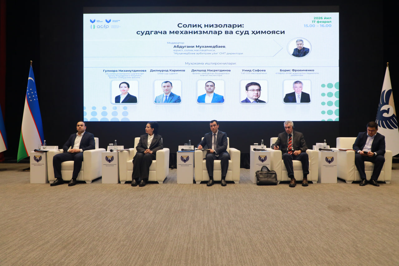 Forum doirasidagi «Soliq nizolari: sudgacha mexanizmlar va sud himoyasi» sessiyasida Biznes-ombudsman mas’ul xodimi Dilshod Nasretdinov ishtirok etdi. U o‘z chiqishida tadbirkorlarning huquqlarini himoya qilishda soliq nizolarini hal etishning amaldagi tizimi va undagi og‘riqli muammolarga alohida to‘xtalib o‘tdi.