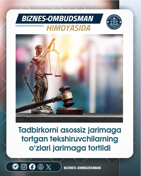 Tadbirkorni asossiz jarimaga tortgan tekshiruvchilarning o‘zlari jarimaga tortildi