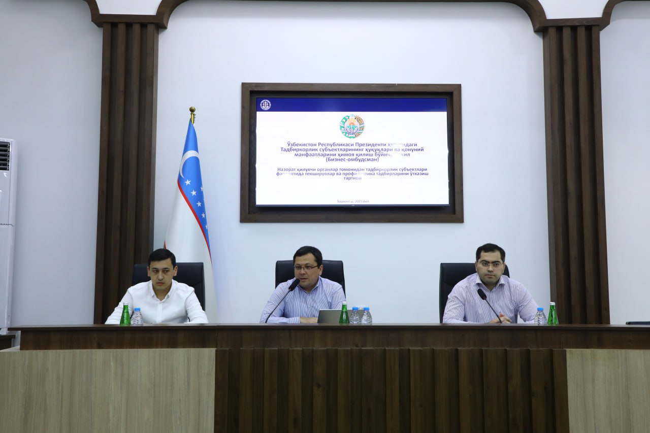Назорат қилувчи органларнинг 130 га яқин вакиллари иштирок этаётган тадбирда тадбиркорлик субъектларида текширувларни амалга ошириш тартиби, шунингдек, текширувчиларнинг ҳуқуқ ва мажбуриятлари тўғрисида кенгроқ маълумот берилмоқда.
